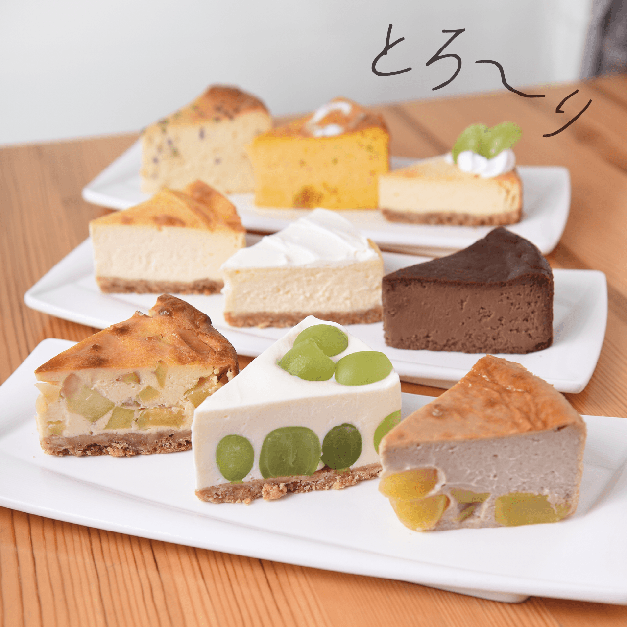 なめらかなベイクドからさわやかなレアタイプまで、秋の味覚を合わせた多彩なチーズケーキをアソートで。栗やかぼちゃ、りんごなど旬の素材を活かした、この季節だけの特別な味わいを楽しめる。