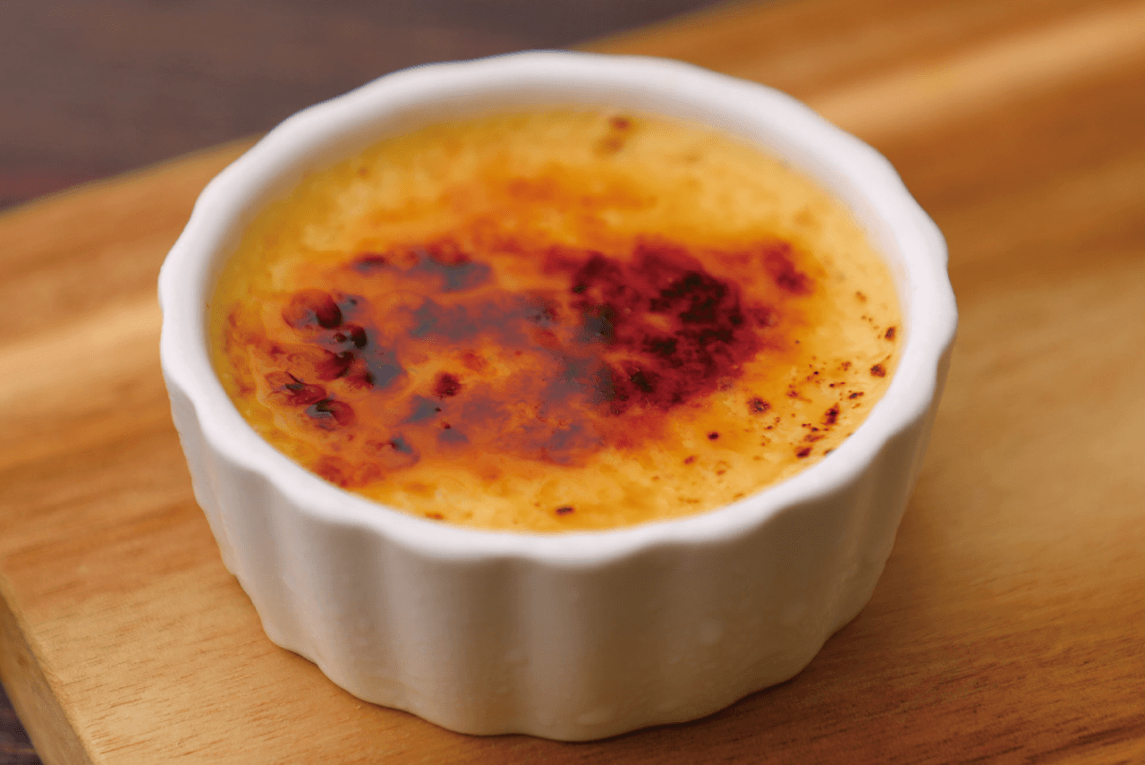 自家栽培さつまいものスイートポテトを、飛騨りんごと焼き上げた秋満載スイーツ。パイ生地は国産の小麦とバターで作るサクサク食感。1カット630円。ホールは要予約。濃厚クレームブリュレも新登場!