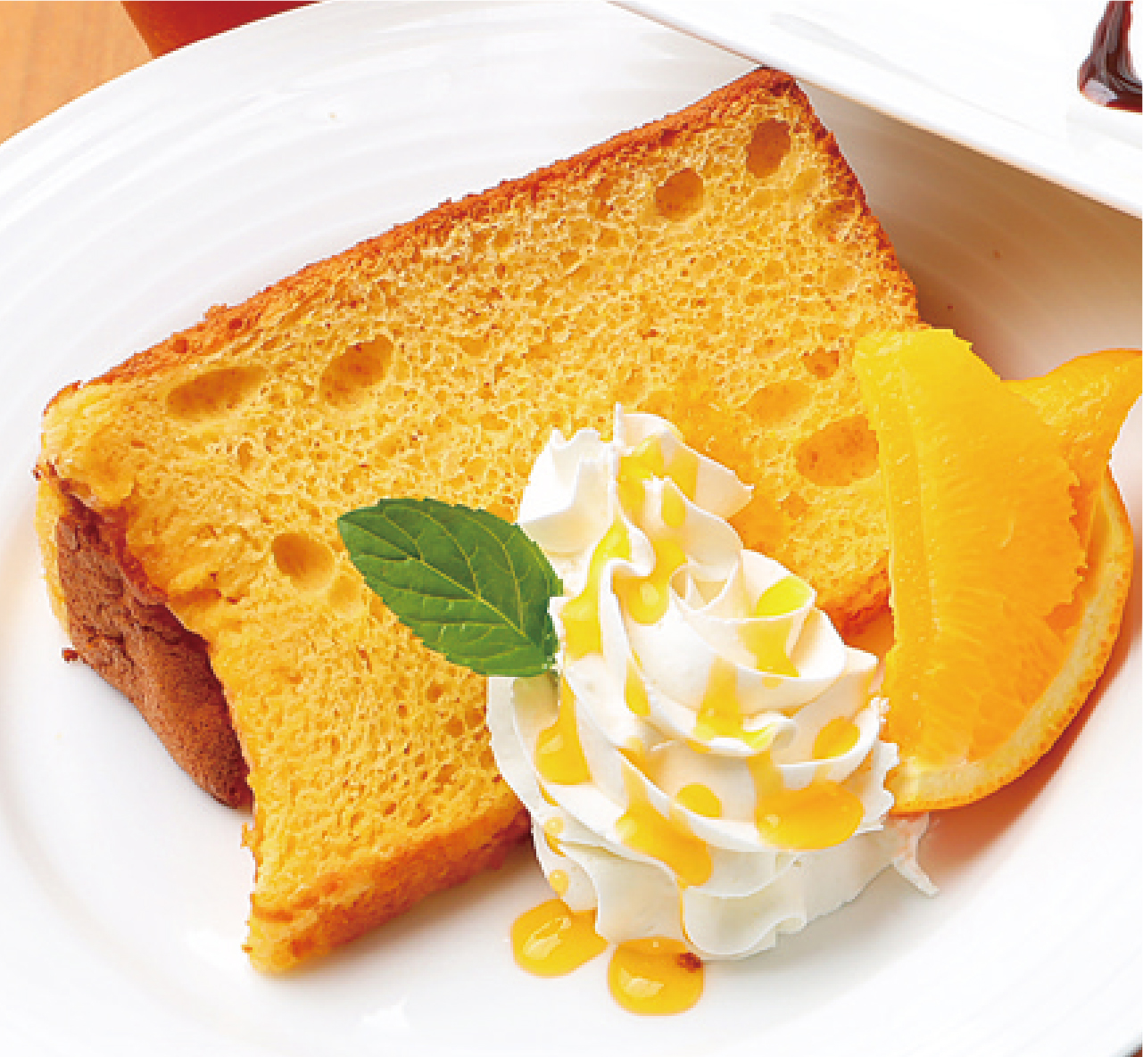 お好きなシフォンケーキとコーヒー or 紅茶セットのペア無料券をプレゼント。店内でゆったりと楽しんで。