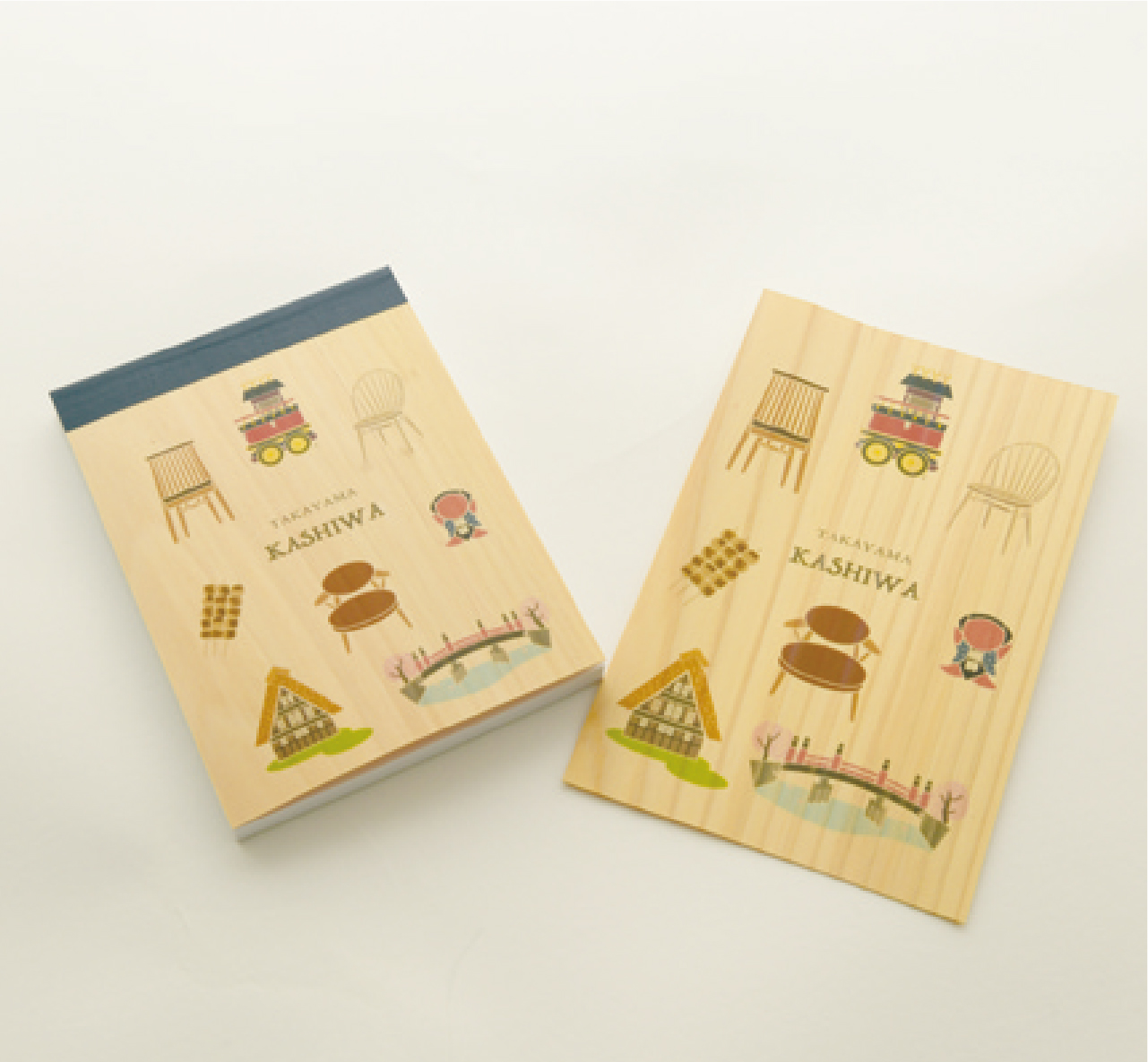ヒバの木の魅力がいっぱいのメモ帳と「木の葉書」のセット。読む人の心を癒す木の香りで、小さな幸せを届けてみては。