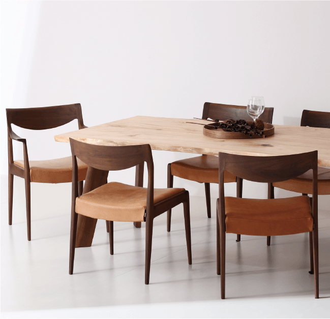 飛騨のみならず日本には多くの広葉樹木材資源が眠っているが、木材としての加工の難しさや林業の人手不足をはじめ、その価値を最大限に活用するための供給体制に未だ多くの課題を残している。その課題の解決としてのポテンシャルを感じさせるのが〈NIPPON COLLECTION〉だ。厳選された「国産材」、「県産材」を天板に使用したこのシリーズは、日本に眠る森林資源に新たな価値とストーリーを与えた。森によって栄えた匠たちが今、未来の森を守るためにその挑戦を始める。