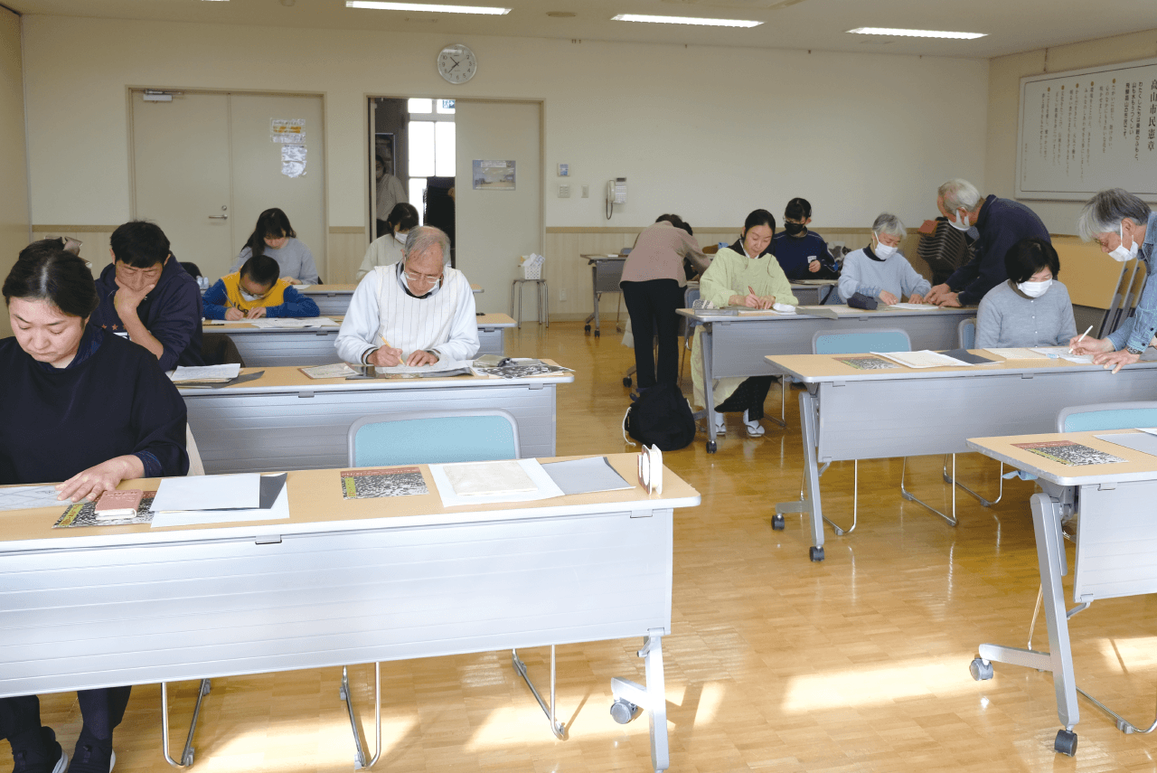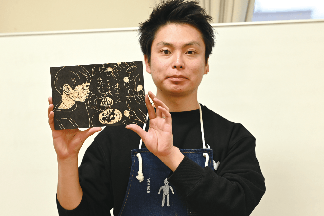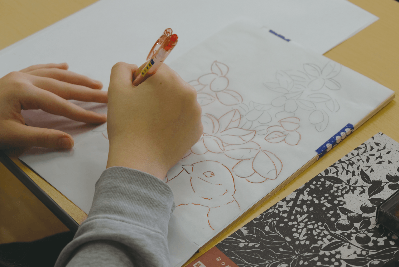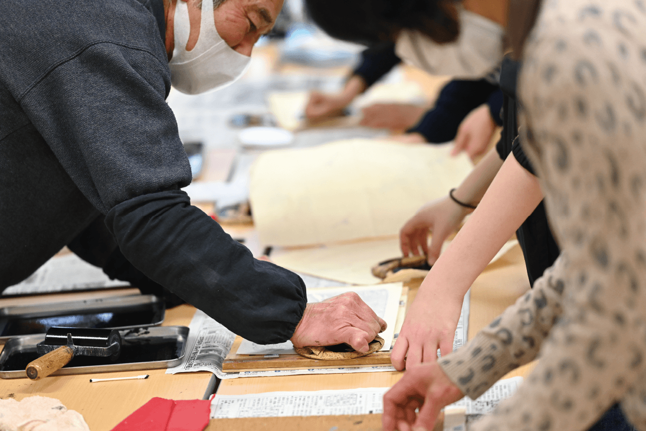 飛騨では古くから親しまれてきた「ナツメ」の実。甘く煮たそれが食卓に上がるのは飛騨の冬の風物詩だったが、昨今ではそれも珍しいシーンとなった。そんな「ナツメ」の食文化を守り、「次世代に残したい」と活動を始めたのが〈みんなの庭〉。彼らが開発した「乾燥ナツメ」用の包装紙を、版画で制作するワークショップが開かれた。使われるのは、河合で手漉きされた「山中和紙」。小学生から80代までの幅広い年代の参加者が、〈ひだ木版同好会〉の方々の指導を受けながら、思い思いの図案に取り組んだ。美しい「山中和紙」を使った唯一無二の包装紙が、「ナツメ」を次世代へとあたたかくつないでいく。