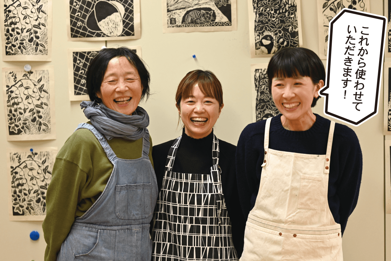 ナツメをテーマに制作した版画を、包装紙として使う試みのワークショップへ。