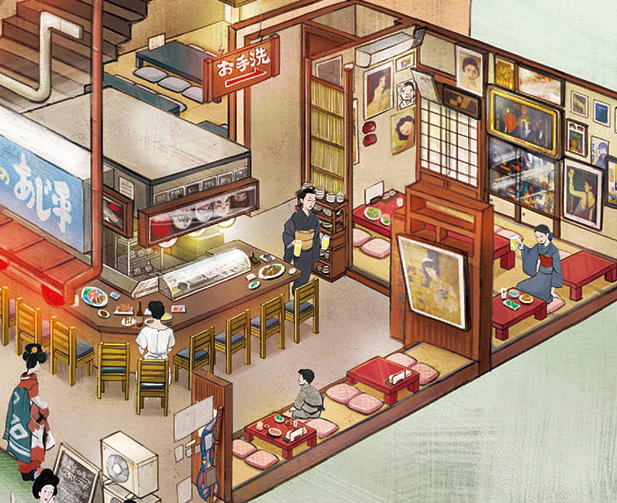 鰻の成瀬の広々とした店内