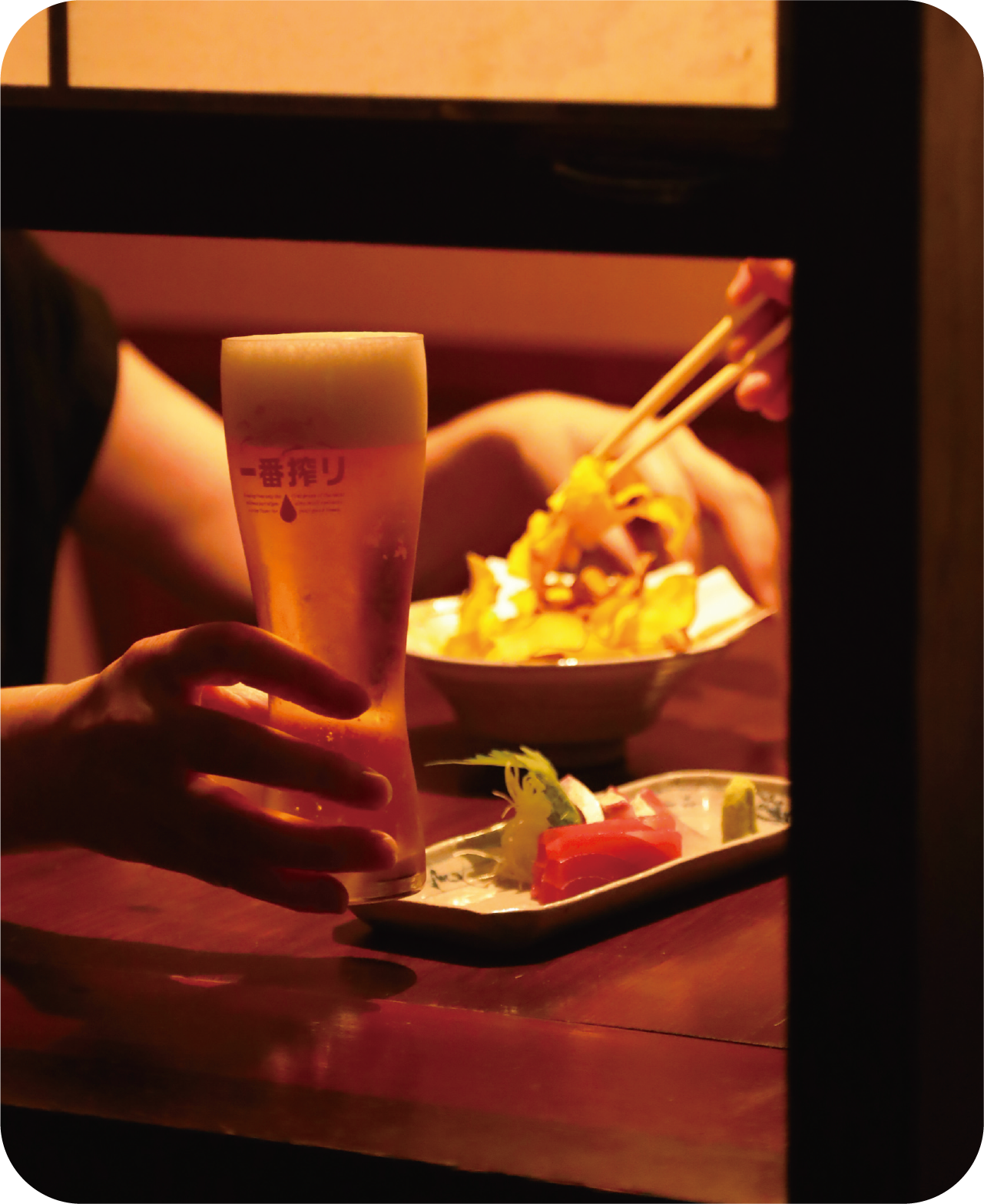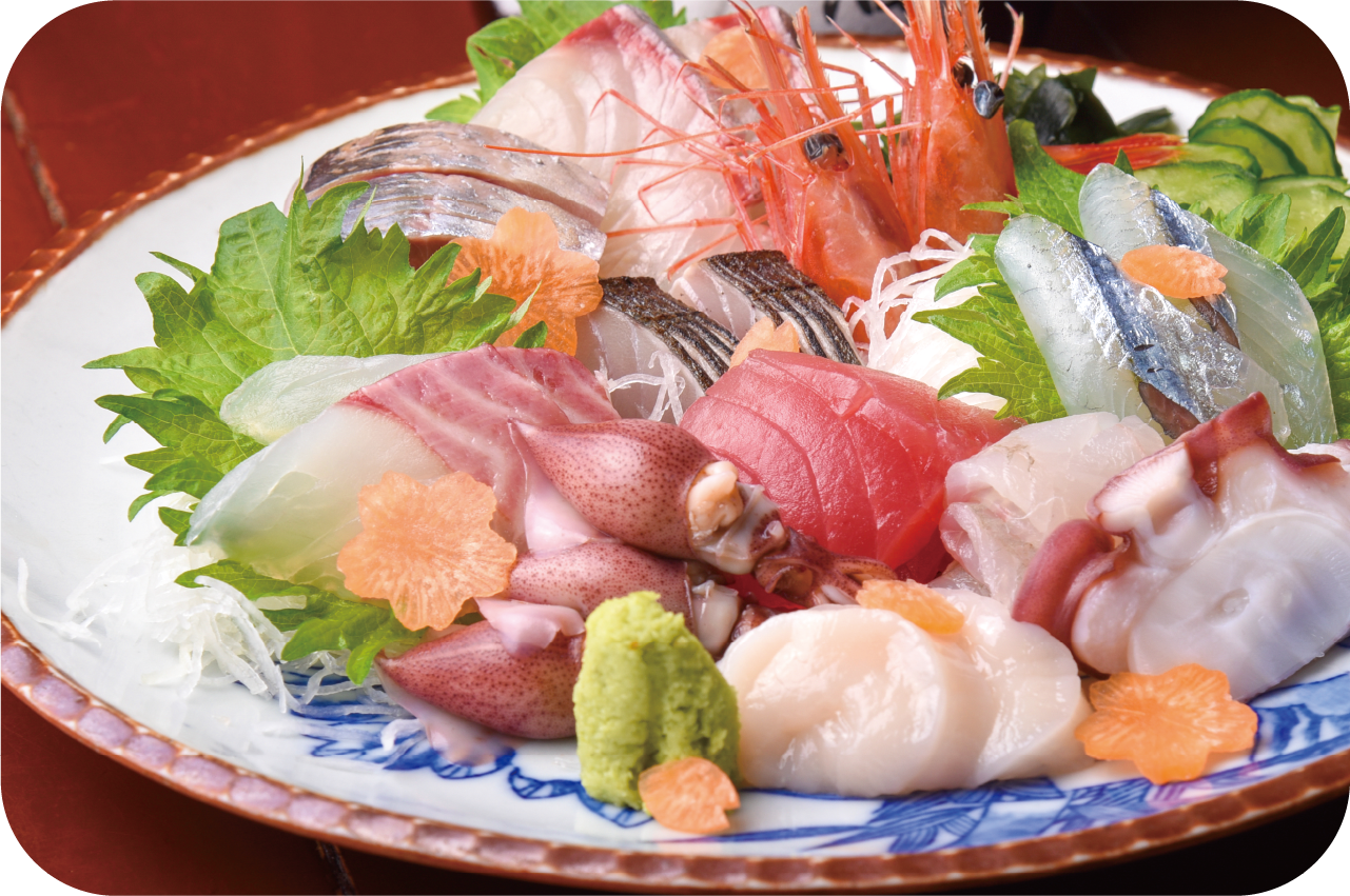 この店のおすすめは刺身の7点盛り。その日の仕入れから、旬の旨いをおまかせで楽しめる! 地元酒造所の梅酒と一緒に、春の訪れを舌で感じてみて。
