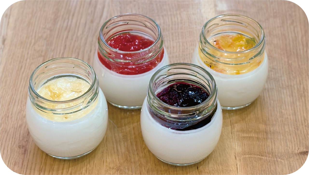 自家製プレーンヨーグルトや、プレミアムヨーグルトなど計4種を食べ比べできる特別セット。この機会に食べ比べして、好みの味を見つけてみて。