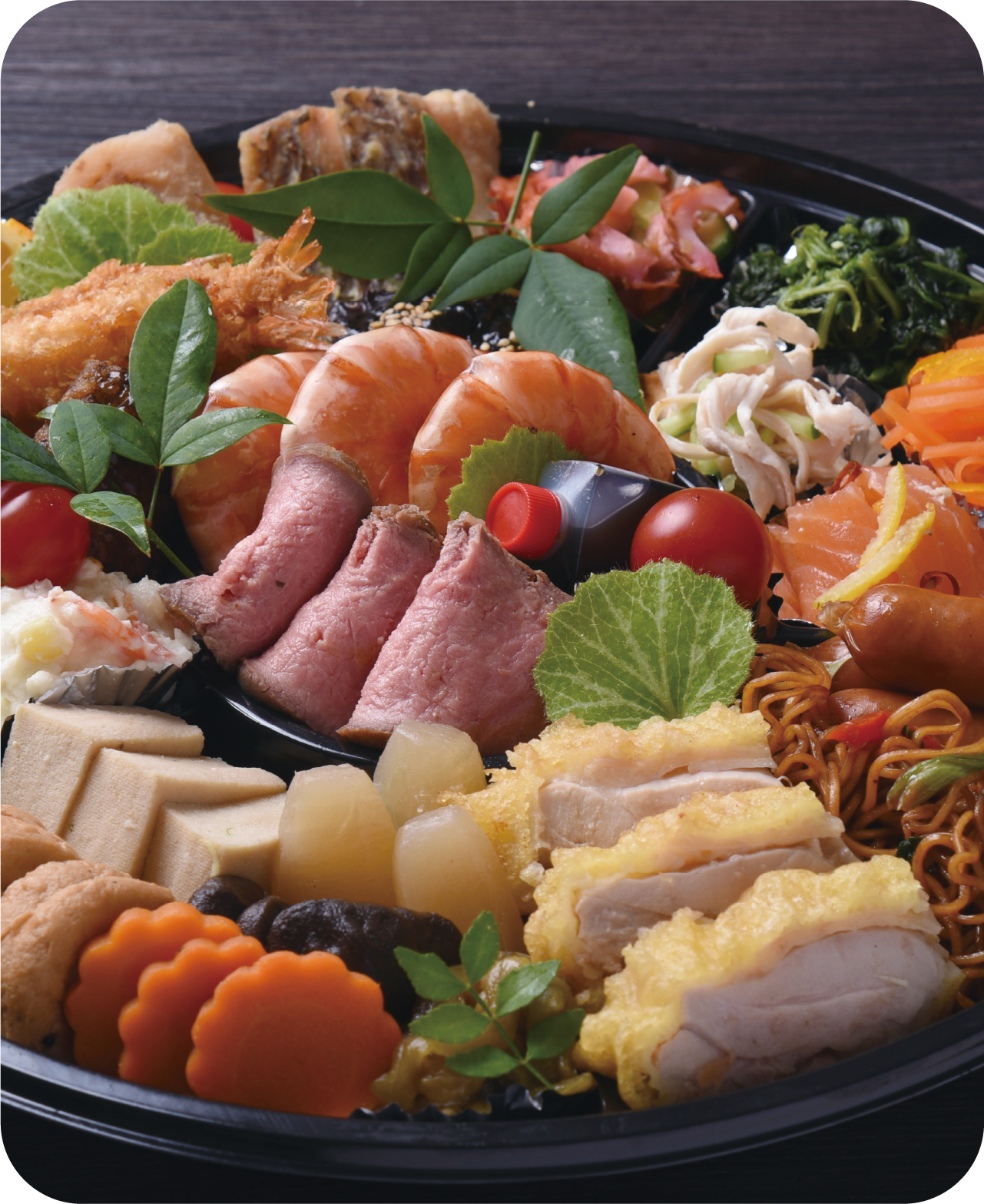 5月末までの期間限定で城東人気のローストビーフが増量! お祝いやお祭りにぴったりのオードブル & お弁当の予約はただいま受付中! (1,500円より)。