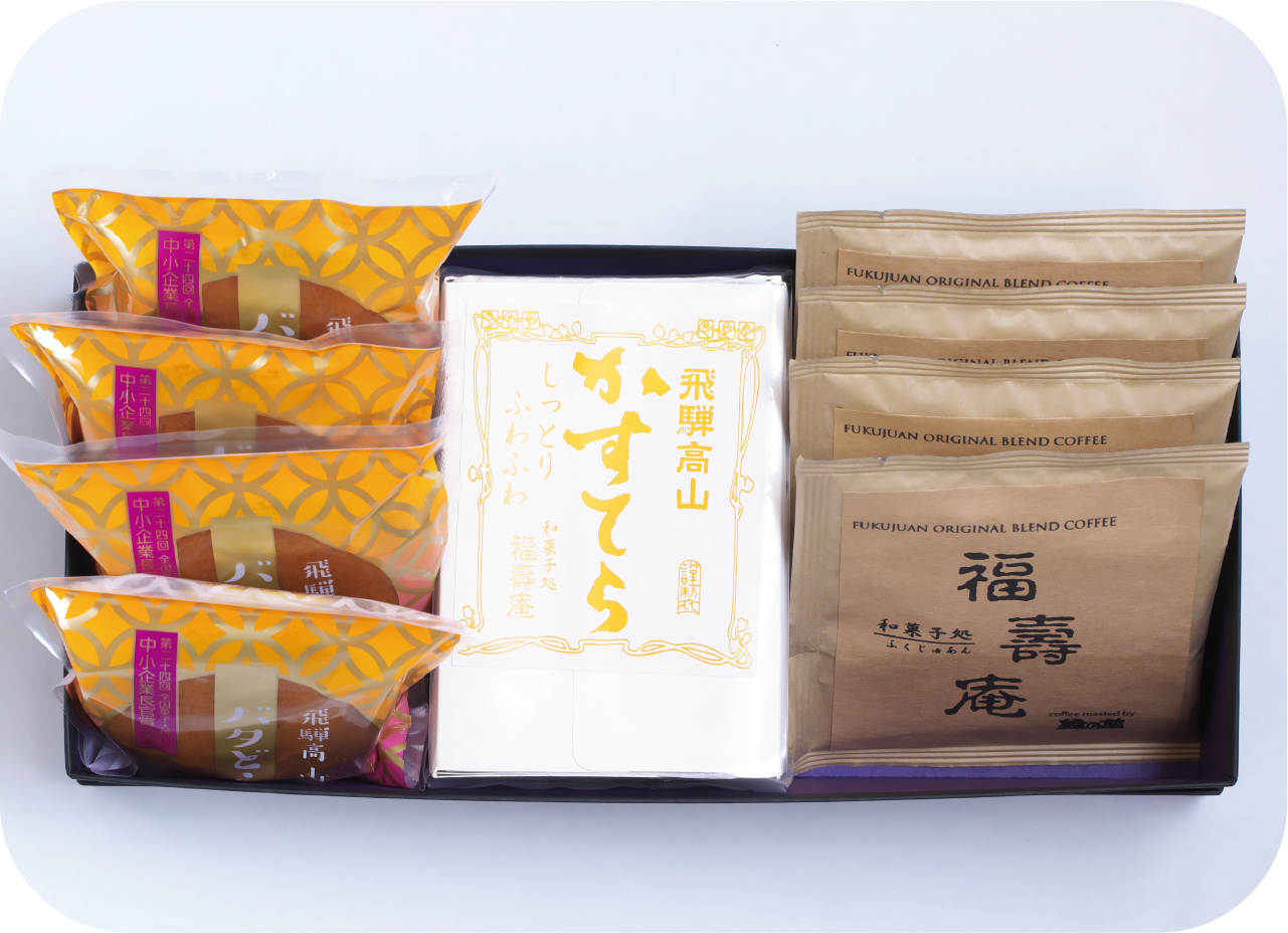 春の贈り物にピッタリのお菓子が豊富に揃う〈福壽庵〉。ふんわりと焼き上げたどら焼き生地に、コクのあるバターと上品な甘さの餡を合わせた人気の「バタどら」や、しっとりやさしい甘さのカステラなどを、大切な方に届けてみて。