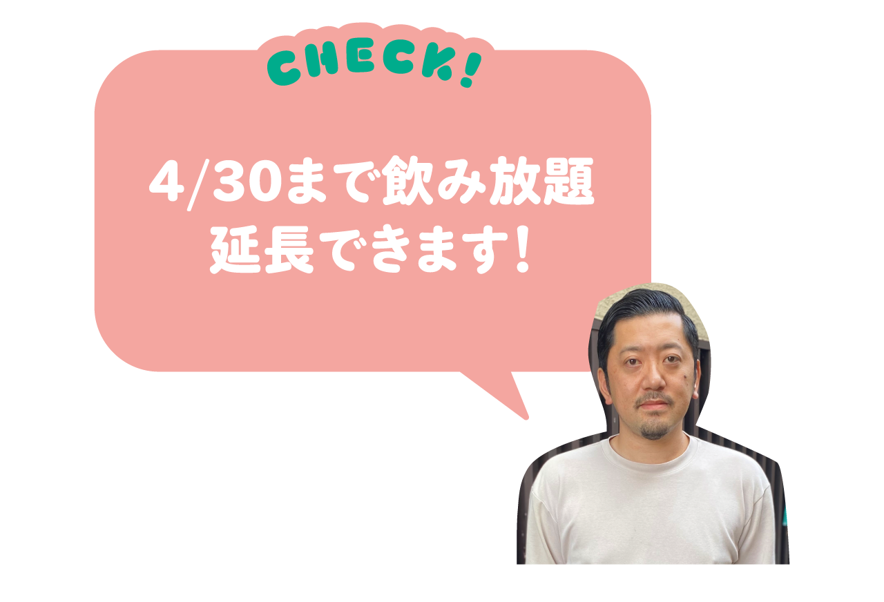 商品券1人1枚以上の利用で、2時間飲み放題がなんと2.5時間に! 6時半前スタートが条件で、土曜以外に適用可能。気軽に春の飲み会で利用してみては?