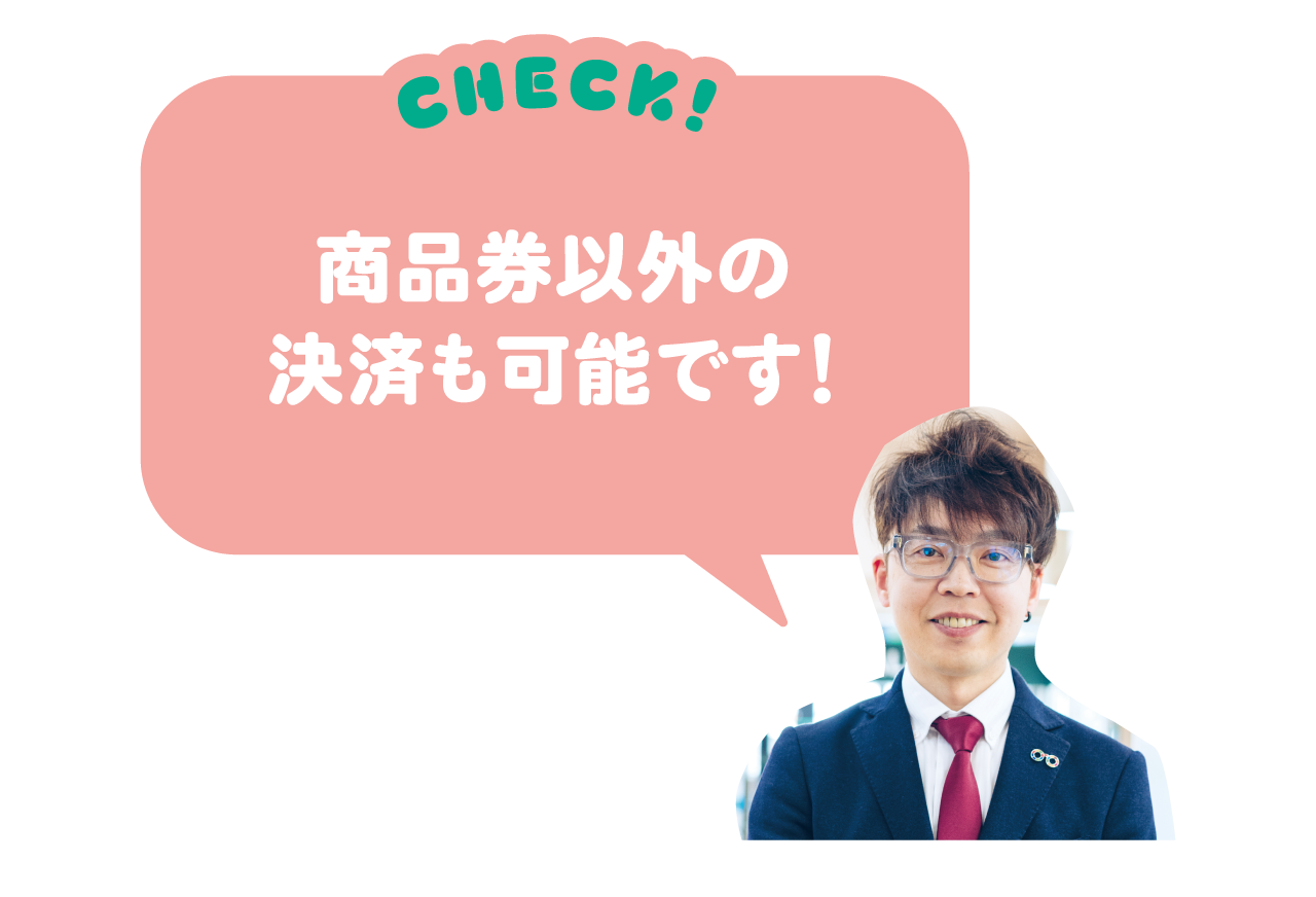 館内では、ランチやディナーの食事での利用はもちろん、カフェやスイーツでの利用、〈物産館〉でのギフト購入や宿泊まで、日帰り入浴と金券購入以外は、すべての店舗で商品券の利用OK! 使い方は自分次第。どう使うかを考えるのも楽しい!