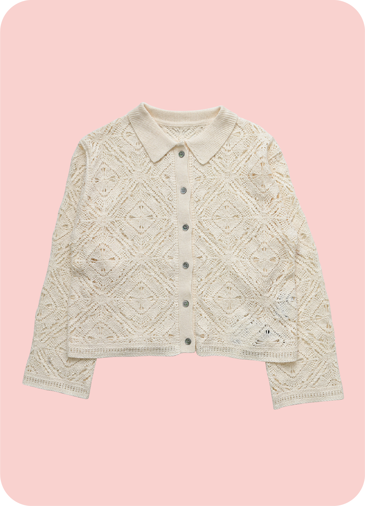 肌触りのいい透かし編みのカーディガン。中に合わせるアイテムを差し色に、いろんなバリエーションで着回せるのがうれしい。この春一枚欲しいアイテム。