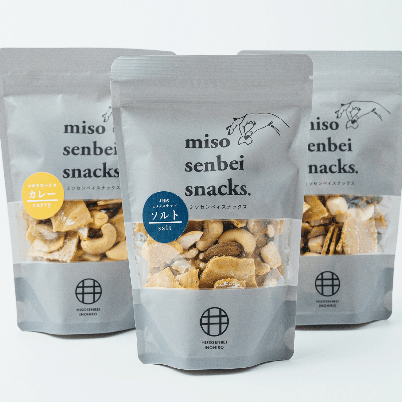新発売! お酒に合うおつまみミソセンベイスナックスシリーズ。全3種類を1セットにしてプレゼント!