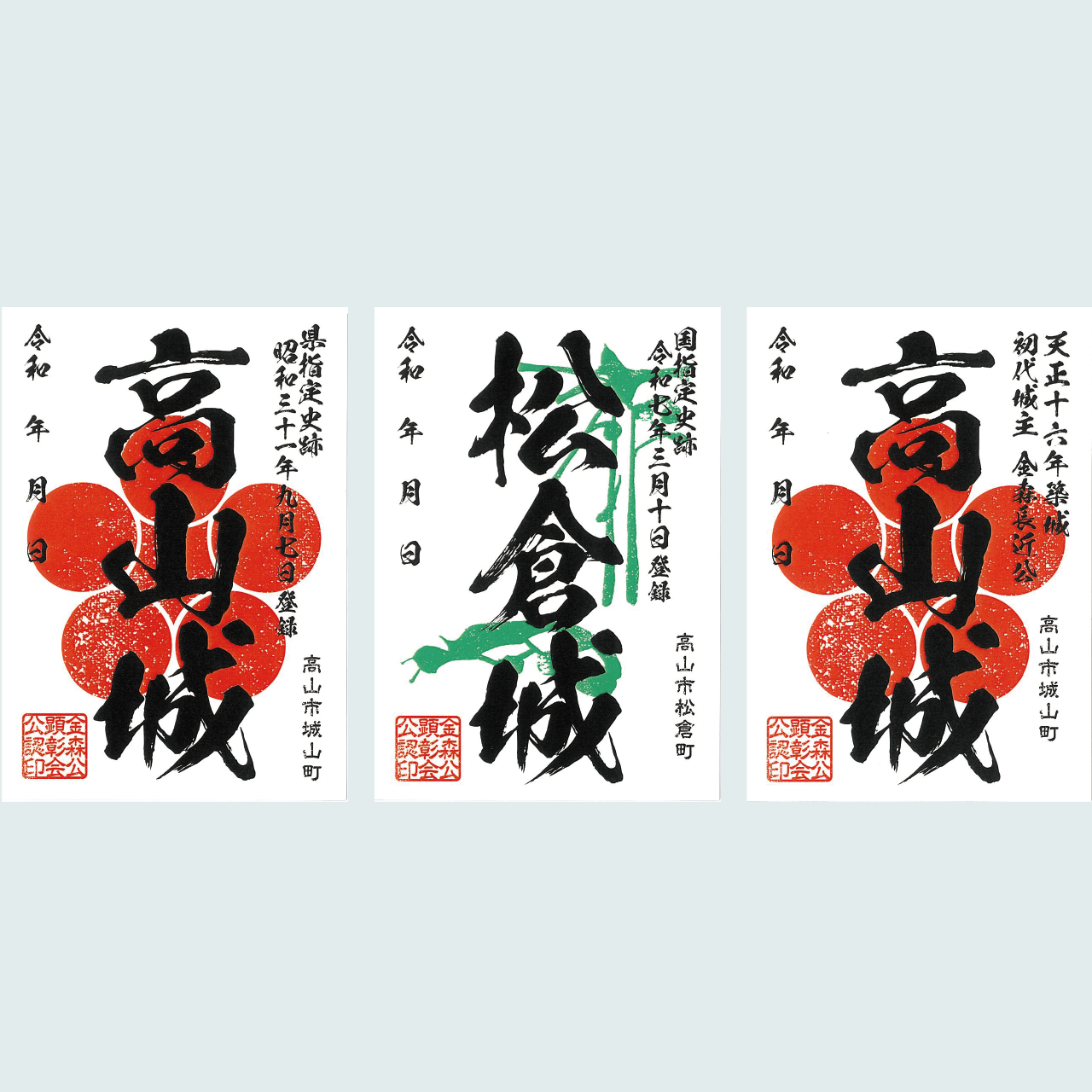 全国的なお城ブーム! 要望に応えて高山市内にあるお城の「御城印」が完成。第1弾として「高山城」を2種類と「松倉城」を3名に。