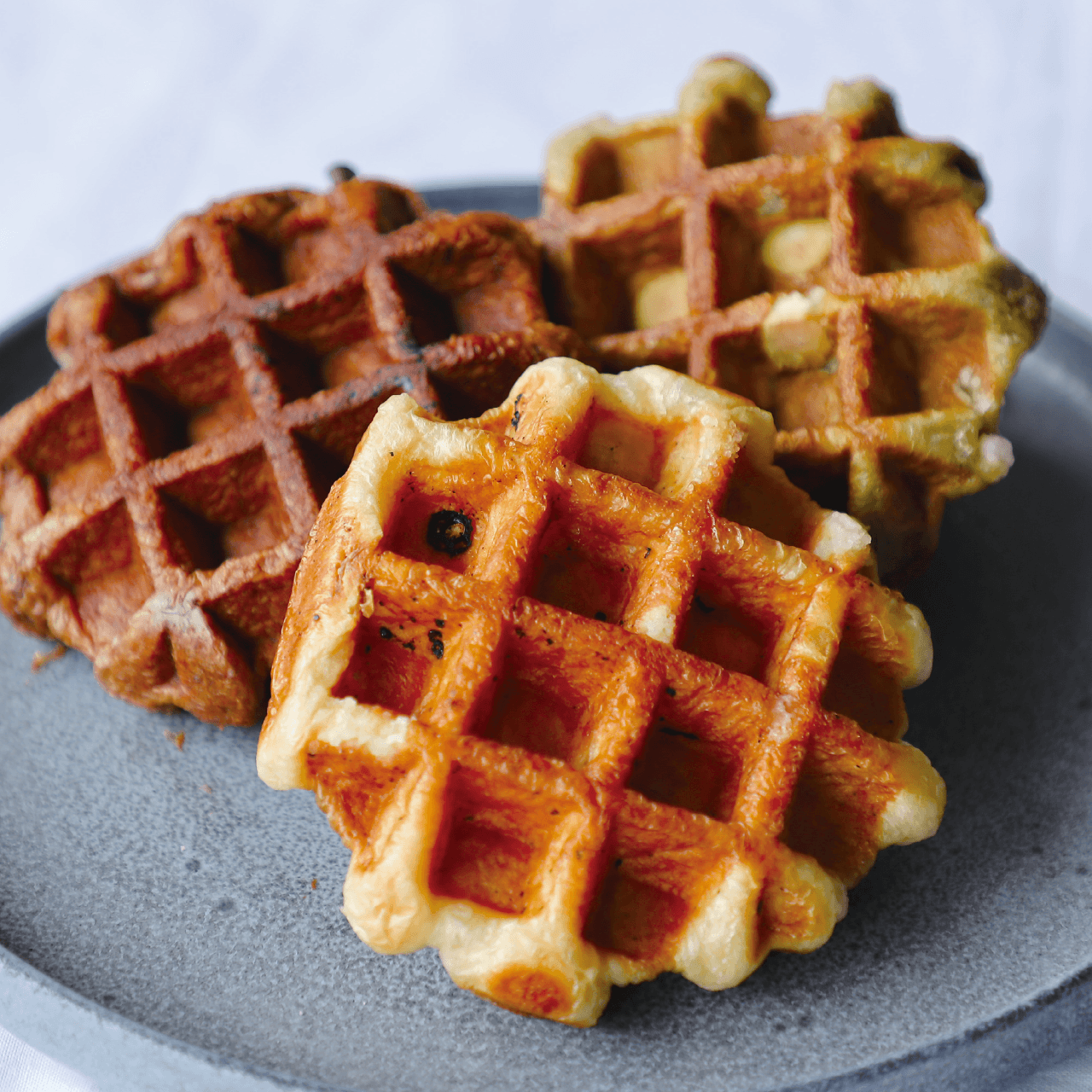 岐阜県産小麦粉と地元で作られた牛乳・卵を使用したベルギーワッフルを3名に。外はカリッと中はしっとり。他フレーバーもおすすめ!