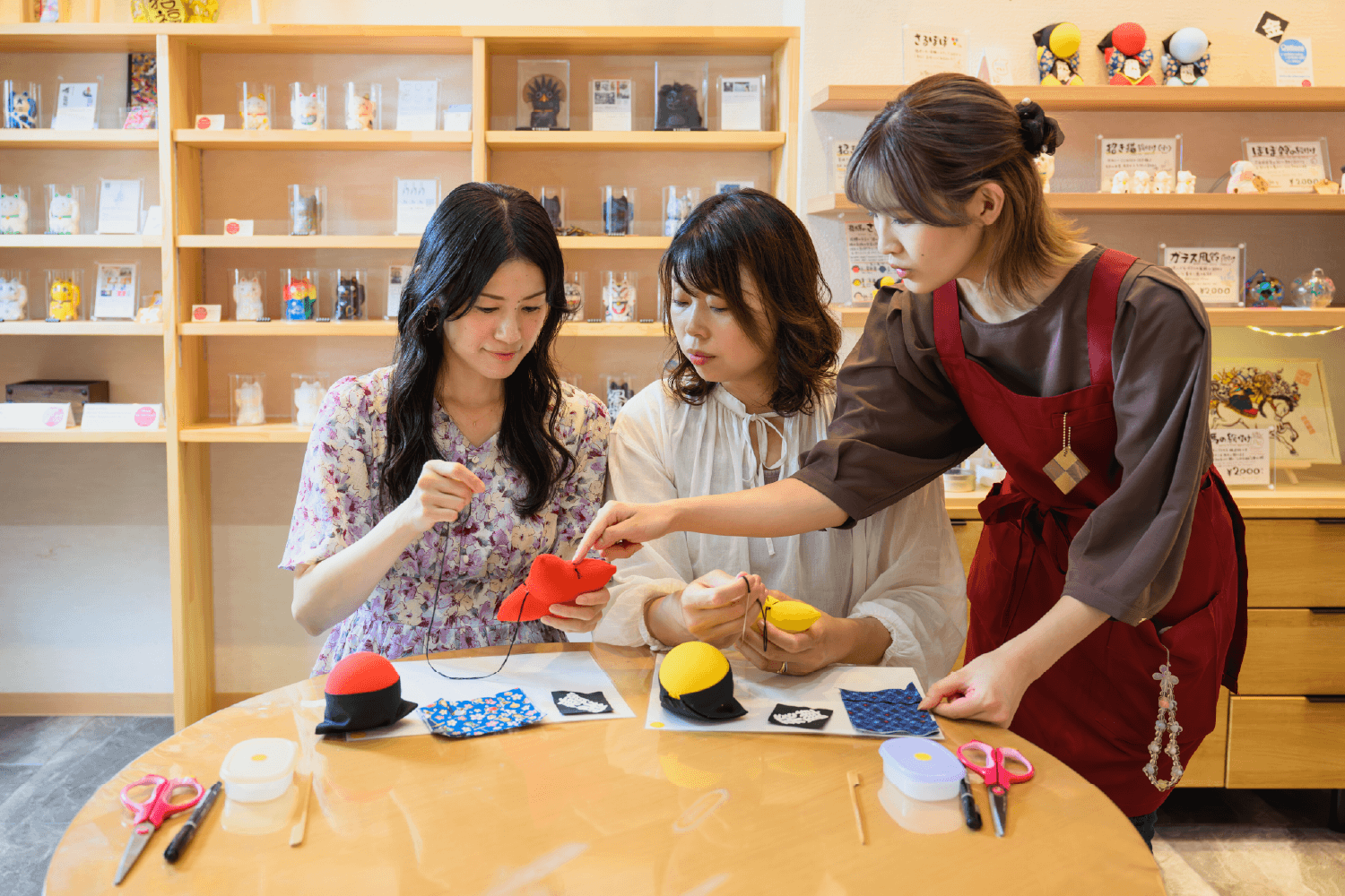 飛騨土産の定番「さるぼぼ」をモチーフにした様々なアイテムを自分の手で作れる「手作り体験」の専門店。招き猫の絵付け体験や、子供に大人気のスノードームづくりなど、ものづくりの文化が豊かな飛騨高山ならではの体験メニューも揃う。家族や友人と思い思いのクラフト体験を!