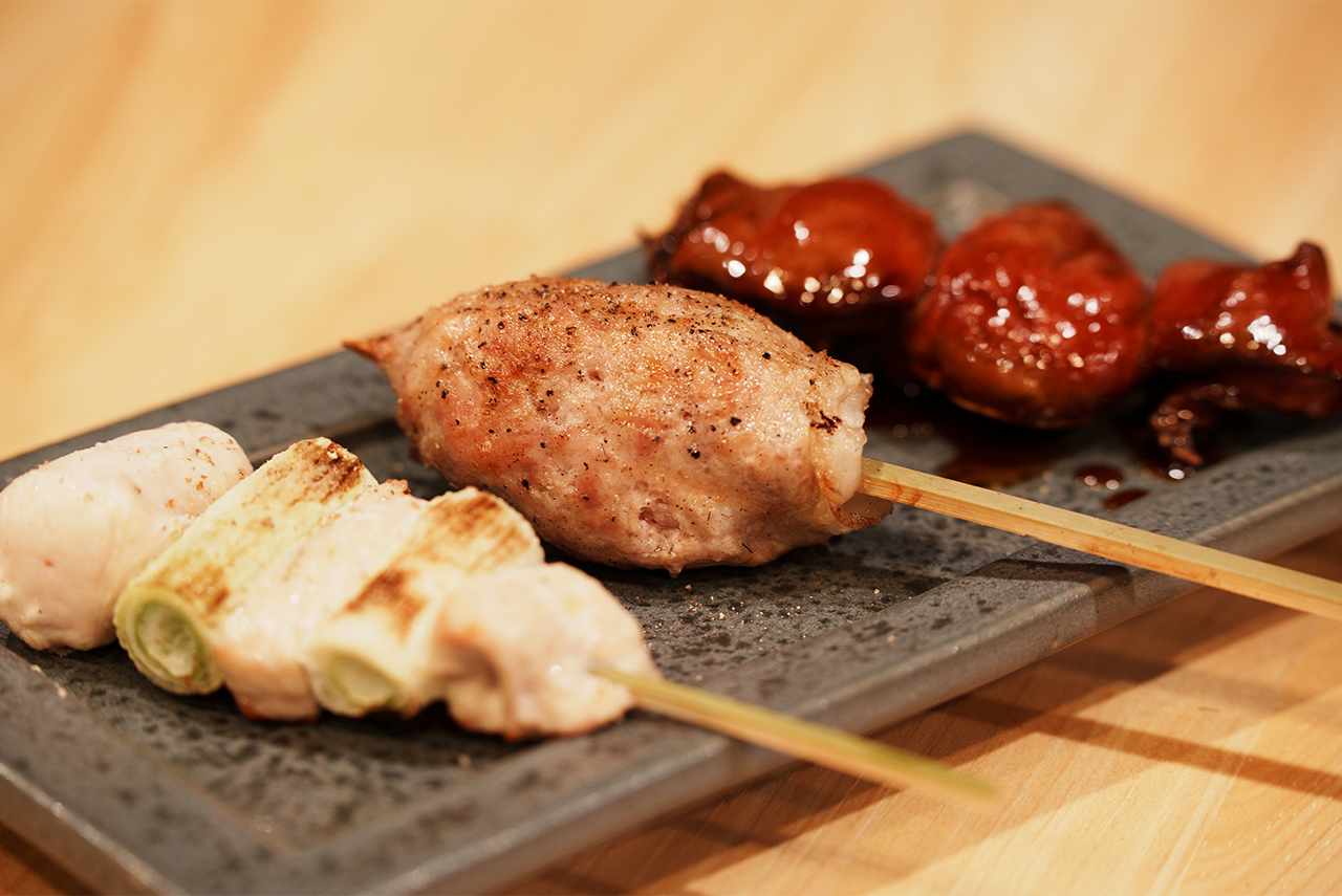 朝日町の一角をにぎわすのは、焼鳥をはじめ炭火を使った鳥料理と三崎漁港直送のマグロ料理を出す〈鳥ト鮪 かめ〉。「テリヤキポテサラ」や「明石焼き風出汁巻き玉子」など思わず頼みたくなるサイドディッシュも充実。古い民家の味わいを活かしてリノベした店内には、カウンターやテーブル席のほか、6人ほどで使える個室もあり。串を焼く香りに誘われ、今宵もその扉を開いて。